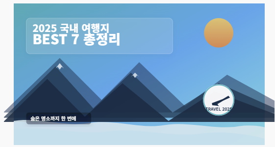2025년에도 국내 곳곳에는 사계절 내내 아름다운 여행지가 가득합니다. 이번 글에서는 많은 여행자들이 찾는 인기 명소뿐만 아니라, 아직 잘 알려지지 않은 숨은 여행지까지 함께 소개합니다. 여행 계획을 세우는 분이라면 꼭 참고해 보세요.